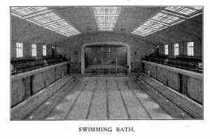 Erected at a cost of about £33,393, exclusive of land and furniture the building is primarily designed as a swimming bath, but is convertible into a public hall during the winter months.
